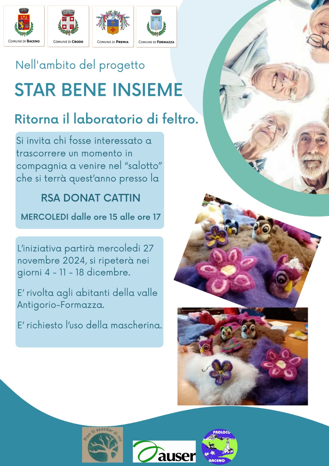 c/o RSA Donat Cattin dalle ore 15.00 alle 17.00 a partire da mercoledì 27 novembre fino al 18 dicembre.