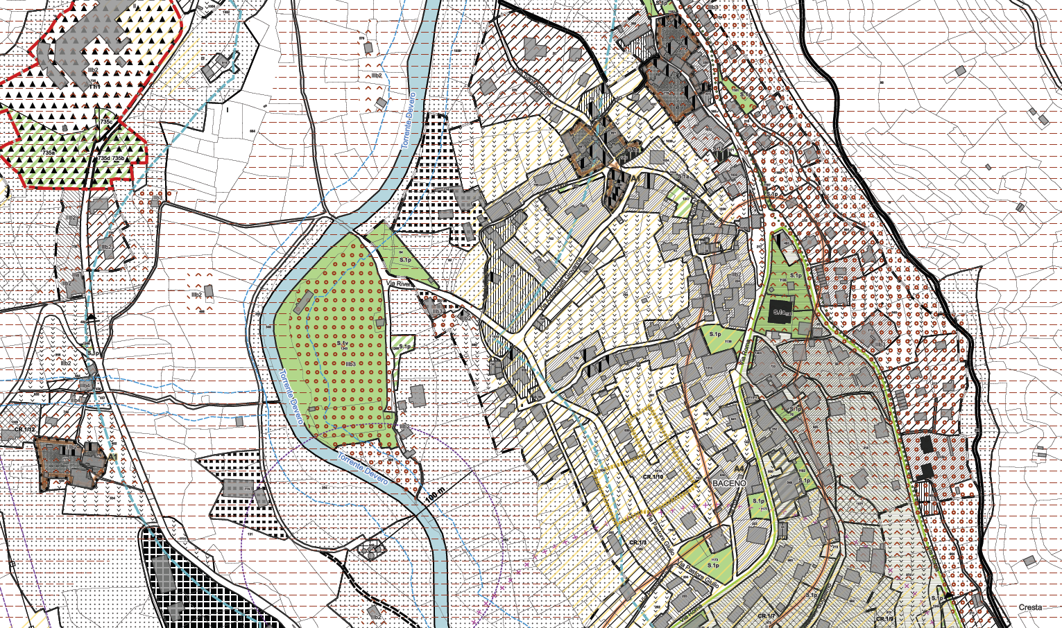 Il Comune di Baceno avvia la procedura di revisione generale del Piano Regolare Generale approvato con D.G.R. n.130-19452 del 11/12/1992 e successive varianti, che tocca tutti gli aspetti della pianificazione urbanistica (norme, standard urbanistici, viabilità) oltre ad essere in adeguamento al PAI (Piano di Assetto Idrogeologico) ed al PPR (Piano Paesaggistico Regionale) con particolare attenzione alla tematica ambientale per la prima volta affrontata in maniera organica.