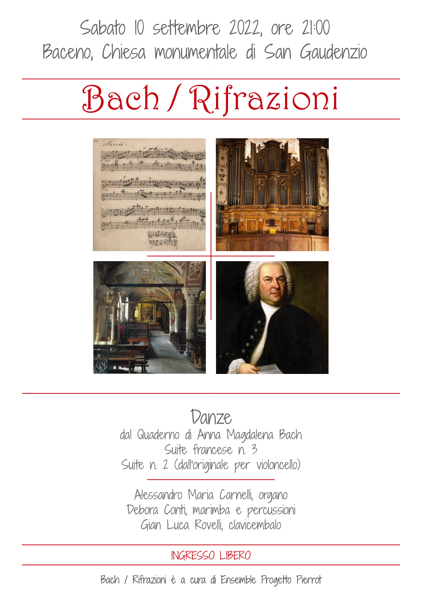 Alessandro Maria Carnelli (organo), Debora Conti (marimba e percussioni) e Gianluca Rovelli (clavicembalo) presentano le seguenti danze: