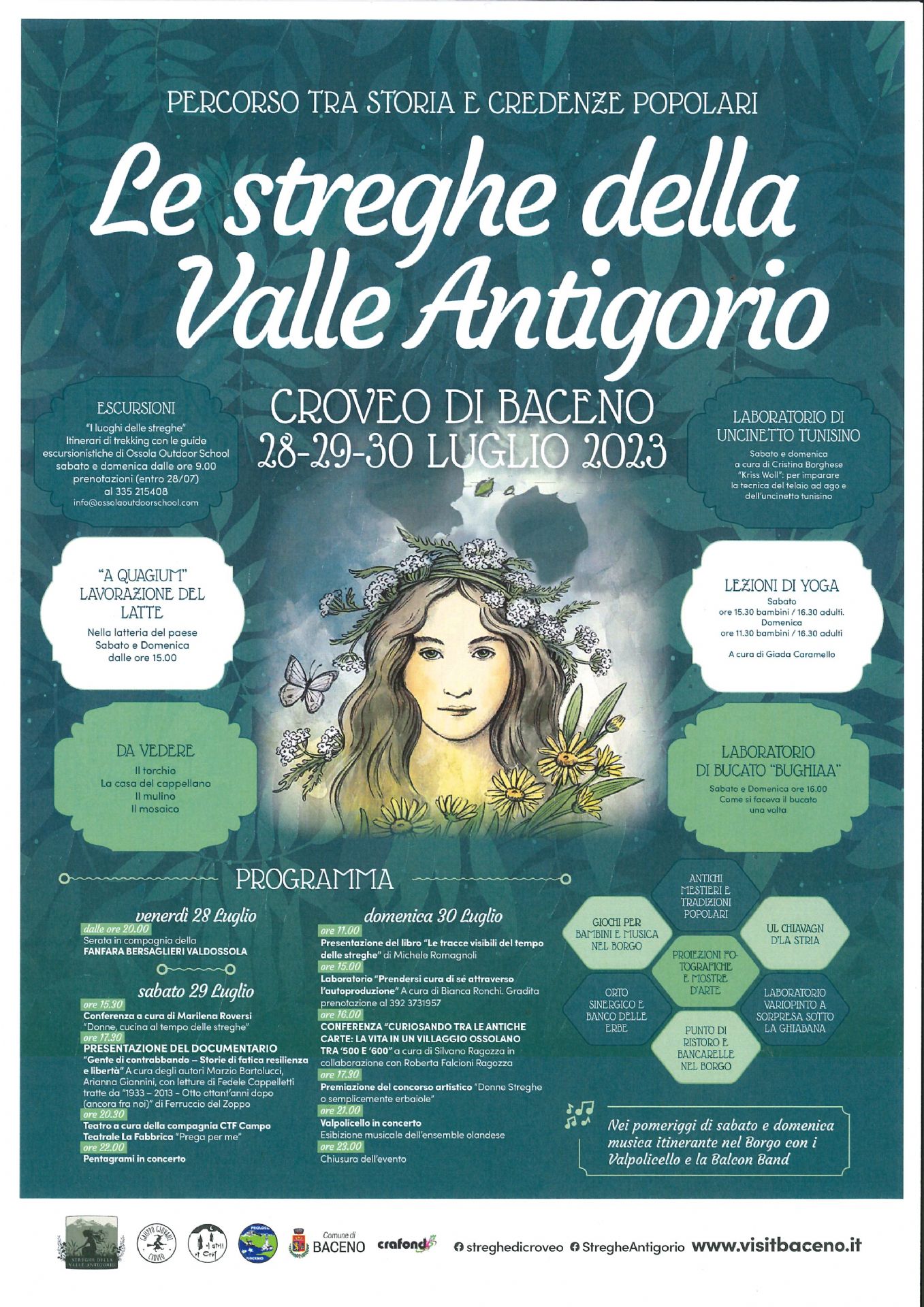La manifestazione, organizzata dall’Associazione Le streghe della Valle Antigorio, prevede spettacoli teatrali, conferenze, concerti, passeggiate tematiche e interessanti laboratori per adulti e bambini, dimostrazioni di antichi mestieri e gustosa gastronomia tipica.