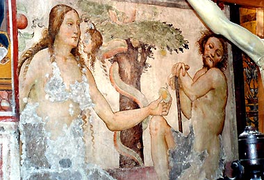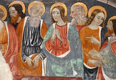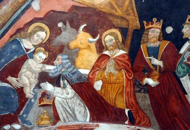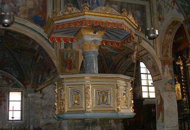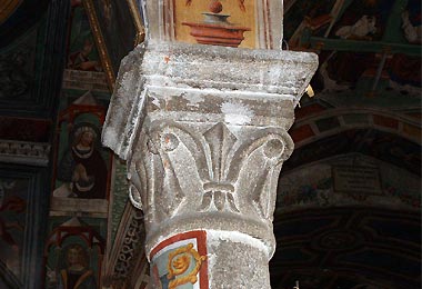 Verso la fine del XV secolo fu dato inizio ai lavori per la costruzione delle navate laterali evidenziando così lo stile Gotico, e contemporaneamente ebbe inizio la stesura degli affreschi che furono completati solo nel 1542 con la grande Crocifissione sulla parete di destra del presbiterio.